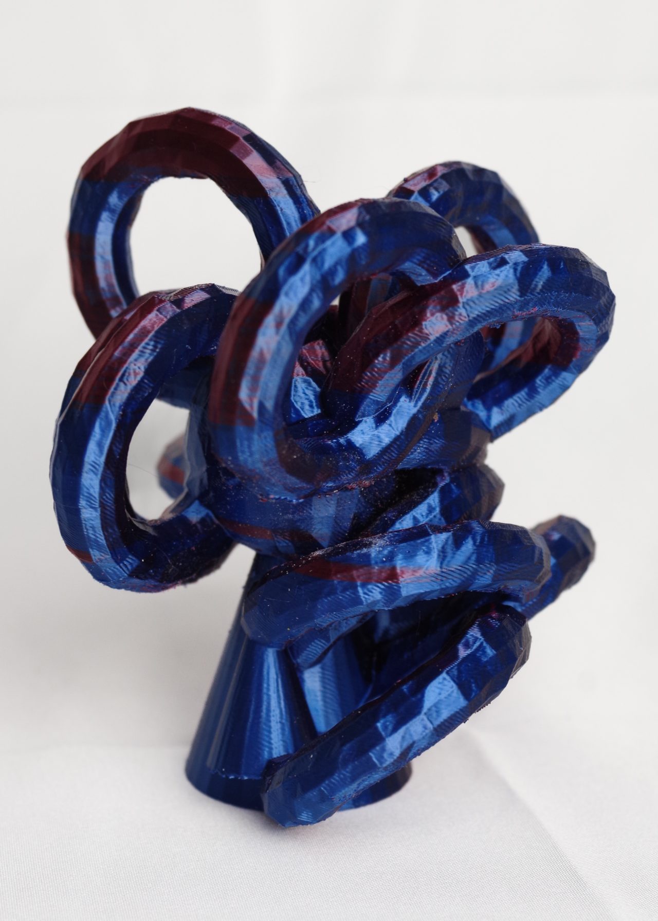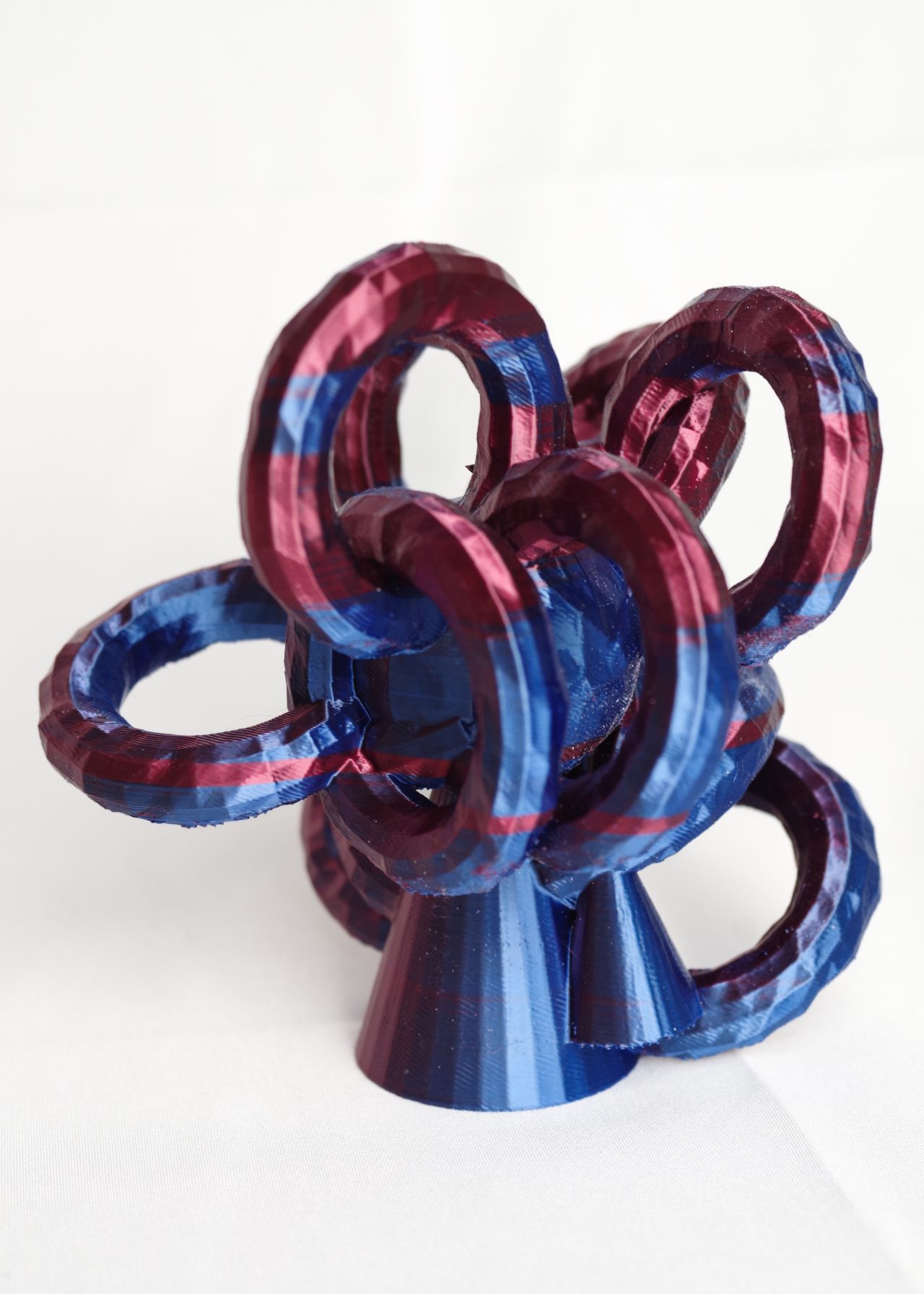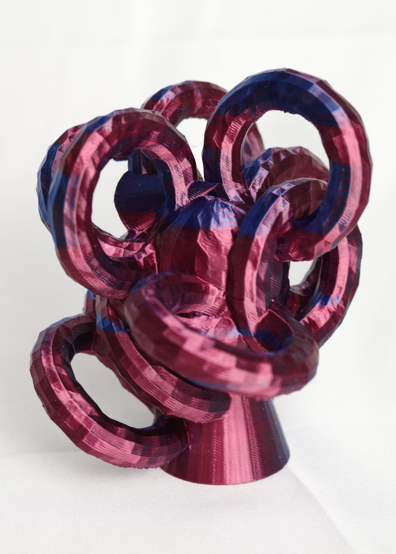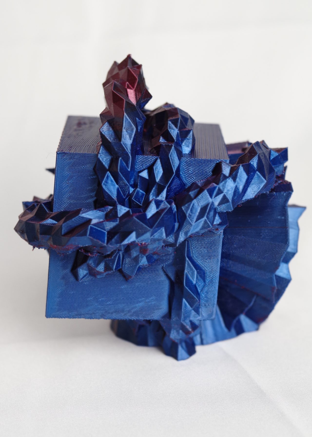 * ExMachina is an AI-powered system designed to conduct psychological tests and translate the results into 3D compositions. The project uses open-source 3D modelling software (Blender) and a suite of custom Python scripts to generate geometry procedurally. The AI logic is trained to arrange data in a way that symbolically reflects key personality dimensions, drawing inspiration from the Big Five model: Openness, Conscientiousness, Extraversion, Agreeableness, and Neuroticism. Each result is a unique abstract form—a visual map of internal tendencies. Final models are printed in biodegradable PLA (polylactic acid) using a desktop FDM 3D printer.